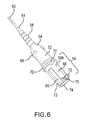 The cartridge (without the material for delivery to be contained therein and without consideration of the internal plunger100) which is attachable to an external pressure delivery source (hereinafter the “cartridge housing”) is, in one preferred embodiment, generally made of a unitary construction from a moldable plastic material as may be known in the art and is generally rigid with certain degrees of flexibility imparted to specified regions such as the specified “corrugated region” (due to the “corrugated nature” of such region) and/or deformable tip region (due to it thinner cross-sectional dimension at the tip than at other regions and optional rigidity in other regions (such as in the portions which form the portions of the cartridge used to attach itself to and lock onto the external pressure applying means, primarily due to their greater thickness (relative to the tip portion)). When desired, the cartridge housing may be made in whole or in part of metal, provided the corrugated portion is present and the that region can be bent or extended as discussed elsewhere herein. In preferred embodiments which have the above discussedrigid ring70 and thevertical rods69 present, themultiple members68 are firmly held in place relative to one another. In other embodiments, where theconnectors75,multiple rods69, and/or thering70 are not part of the cartridge and not used in it, themultiple members68 have greater degrees of freedom and may or may not be somewhat flexible (depending on the material from which they are constructed and thickness). In an alternate embodiment, the cartridge housing need not be of unitary construction, but can be made of separate portions that are assembled together. While the unitary construction offers the advantage of simplified construction, the non-unitary construction allows for use of different materials for the portions that need to be deformable and/or flexible from the materials used for portions that need to be more rigid. The greater rigidity of thering70 allows for easier handling and % or manipulation of the cartridge by the user.