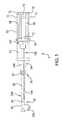 FIG. 11 shows one embodiment of the invention cartridge assembled to one embodiment of the external force applying member, in this figure in particular, a syringe, with the syringe only partially shown