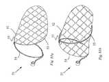 FIGS. 121aand 121billustrate anotherbasket assembly931 of the invention in an expanded configuration. This basket assembly has aproximal loop932, amiddle loop933, and adistal loop934. InFIG. 121aa cable or pulltether21 is connected attether connection point935 adjacent themiddle loop933 anddistal loop934 cross over point. InFIG. 122bthetether connection936 is on thedistal loop934. The frame comprises three loops substantially the same circumference inFIG. 121. It will be appreciated that the plurality of loops are be incorporated in order to provide additional support to the basket assembly, and further loops can be incorporated.