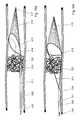 FIGS. 123aand 123bshow anotherbasket assembly951 of the invention with aproximal loop952 and adistal loop953.FIG. 123bhas a cable or pulltether21 connected to the distal loop for actuation. Thedistal loop953 has a larger circumference thanproximal loop952, but in end view each loop will have substantially circular shapes to appose a vessel wall.