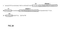 FIG. 29 shows the nucleotide sequence of the regulatory elements of the pHE4a promoter (SEQ ID NO:17). The two lac operator sequences, the Shine-Delgarno sequence (S/D), and the terminal HindIII and NdeI restriction sites (italicized) are indicated.
