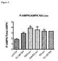It was found that 10 nM nicotinic acid, when administered alone, had no significant effect on AMPK activation (FIG. 3). The combination of nicotinic acid-leucine significantly stimulated AMPK activation to comparable degree as leucine-resveratrol (p<0.01), as demonstrated by an increase in P-AMPK/AMPK, while the three-way combination of nicotinic acid-leucine-resveratrol was not significantly different from either of the two way leucine combinations (FIG. 2).