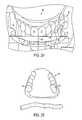 FIGS. 29 and 30 are front view images of the smile of an Individual on which are superimposed the positioning lines and horizontal line of the M Proportion ruler, and the platform with a template on which is aligned a maxillary model or cast;