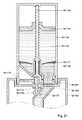 Rotatably received on the bottom10351 is a groundcoffee conveyor disc10369 that has adriving hub10371 that can be drivingly engaged throughcentral opening10373 in thebottom10351. The rotatable groundcoffee conveyor disc10369 includes anupstanding closing flap10375 for closing aperimeter aperture10367 in the first cylindricalinner wall10361. Theperimeter aperture10367 communicates with theground coffee outlet10311 via a cavity that is offset with respect to column of ground coffee within theinterior volume10335, for a purpose already explained. Theclosing flap10375 functions as the movable closing means. As seen inFIG. 15C theconveyor disc10369 may be provided, as part of the conveyor means and guiding means, with a number of radially extending ridges in addition to an upwardly convex shape. These features, which are optional, may be employed to assist conveyance of the ground coffee towards the periphery of theconveyor disc10369 by forming an agitating and guiding means for the ground coffee. In an alternative arrangement the rotatable ground coffee conveyor may be formed by a paddle wheel with radially extending paddles or vanes. To prevent ground coffee jamming it may be advantageous not to have these paddles or vanes extend the entire radial distance to the perimeter edge of the paddle wheel or impeller. Alternatively or additionally the vanes may be formed in a flexible material. More in particular the entire impeller may be made from an elastic material, in particular in a plastic material having an E-modulus in the range of 150 to 1200 N/mm2, more in particular 175 to 800 N/mm2, and preferably between 175 and 300 N/mm2. Further it is possible to vary the number of vanes in relation to the area of the perimeter aperture to block the escape of ground coffee with the impeller at rest.