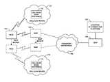 TheWCD102 may be configured to detect cellular coverage where theportable WAP104 is located, and theportable WAP104 may be configured to receive information indicative of such detected cellular coverage from theWCD102. Theportable WAP104 may then use that cellular coverage information as a basis to validate a stored WAP location. TheWCD102 may scan for such coverage (and theportable WAP104 may be configured to receive information indicative of such coverage) in a variety of ways. In one example, theWCD102 may scan for such cellular coverage each time theWCD102 seeks to place a VoIP call using theportable WAP104. For example, a user may place a VoIP call to an emergency services provider to receive emergency services at the WCD's location. When setting up the VoIP call to the emergency services provider (or any location-based service), theWCD102 may transmit a request for location information to theportable WAP104. In response, theportable WAP104 may request that theWCD102 transmit a list of one or more cellular base stations currently accessible by theWCD102 to theportable WAP104. Theportable WAP104 may then use the received list of cellular base stations as a basis to validate the stored WAP location.