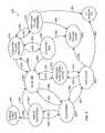Although the examples of the state machines ofFIGS. 7-8 are discussed as monitoring the development of worsening heart failure conditions, the systems and methods described herein can be used to predict or detect a recovery from a decompensated heart-failure or other clinical event. In an example, discussed in reference toFIG. 4, a block diagram representation of an example of astate machine400 can be implemented such as using the examplestate machine circuit195. Thestate machine400 can include afirst state405, asecond state410 and athird state415 and afourth state445. Thefirst state405 can correspond to a physiological condition representative of an acute decompensated heart-failure or other clinical event of the subject110. Thesecond state410 and thefourth state445 can each correspond to a physiological state that can be indicative of a recovery, such as an improving physiological condition. Thethird state415 can correspond to an alert state, where the alert state can indicate an improved physiological condition of the subject110 such as a return to a baseline state. The forward state transitions420,430,450,460 and the reverse state transitions425,435,455,465, in combination with the first, second, third, fourth and fifth timers can correspond to a specified time sequence of events representative of an improving physiological condition.