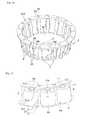 Moreover, in the configuration of the cage described inPatent Document 6, the attachment seats (protruded parts) at the leading ends of the base body are made small in transverse area to position the base body (first member) and the connection body (second member) (refer toPatent Document 6,FIG. 23 and paragraph [0072]), which may result in insufficient strength of the joined and fixed parts of the base body and the connection body.