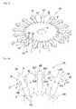 A joining and fixing step is performed to integrate thebase body2 and theconnection body3 such that the square columnar convexes5A,5A, . . . of thebase body2 shown in the perspective diagram ofFIG. 56 having undergone the base body blank cutting step, the rough surface pressing step or laser-cut inclined surface forming step, the tongue piece-inclined surface (small diameter-side end surface receiver surface) forming step, and the folding step are fitted into thesquare holes6A,6A, . . . of theconnection body3 shown in the perspective diagram ofFIG. 56 having undergone the connection body blank cutting step and the large diameter-side end surface receiver forming step, and in that state, thebase body2 and theconnection body3 are joined and fixed together by a welding process such as laser welding or spot welding, or a joint process through a press process such as swaging, or the like.