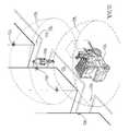 FIG. 20 shows the reaction of the light bar112 in the ceiling182 of the fork lift cage to the pedestrian U50 being left behind. The left-rear section196 is glowing or flashing.