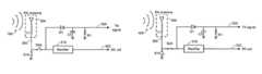 FIGS. 9A-9C shows a simplified schematic of a portion of receive circuitry in various states to illustrate messaging between a receiver and a transmitter. All ofFIGS. 9A-9C show the same circuit elements with the difference being state of the various switches. A receiveantenna304 includes a characteristic inductance L1, which drivesnode350.Node350 is selectively coupled to ground through switch S1A.Node350 is also selectively coupled to diode D1 andrectifier318 through switch S1B. Therectifier318 supplies aDC power signal322 to a receive device (not shown) to power the receive device, charge a battery, or a combination thereof. The diode D1 is coupled to a transmitsignal320 which is filtered to remove harmonics and unwanted frequencies with capacitor C3 and resistor R1. Thus the combination of D1, C3, and R1 can generate a signal on the transmitsignal320 that mimics the transmit modulation generated by the transmitmodulation signal224 discussed above with reference to the transmitter inFIG. 12.
