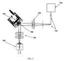 FIG. 7 shows a schematic of an OCT system that includes an optically reflective element mounted an a multi-axis rotatable stage between the light source and the objective lens, according to embodiments of the present disclosure.