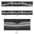 FIG. 11 shows a right inclined OCT image (FIG. 11(a)), a flat OCT image (FIG. 11(b)), and a left inclined OCT image (FIG. 11(c)) of the same retinal area, according to embodiments of the present disclosure.FIGS. 11(d)-(f) show the same OCT images after registration and alignment.FIG. 11(g) shows a composite image ofFIGS. 11(d)-(f).
