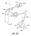 FIG. 5aillustrates analternative shower kit500 in accordance with an embodiment of the present invention in which those elements of the wearablemedical device100′ that could be compromised by contact with water or another liquid, such ascontrol unit120, may be placed in a secure and dry location while the patient is showering or bathing. Theshower kit500 is similar to theshower kit200′ described with respect toFIG. 2b, in that it includes a plurality ofECG sensing electrodes212 and a plurality of therapy electrodes214 which may be similar in construction to the plurality ofECG sensing electrodes212 and the plurality of therapy electrodes214 described with respect toFIG. 2b. Theshower kit500 also includes aconnection pod230 that is similar to theconnection pod230 ofFIG. 2band which is constructed to be water resistant and/or waterproof, and auser interface pod140,140′. Theuser interface pod140,140′ may be a water resistantuser interface pod140′ or a non-water resistantuser interface pod140. However, in contrast to theshower kit200′, thecable525 that electrically couples theconnection pod230 to thecontrol unit120 and thecable535 that electrically couples theuser interface pod140,140′ to thecontrol unit120 are of a sufficient length (e.g., approximately 3 meters or more) to permit thecontrol unit120 to be placed outside of the shower or bathing area in a dry location, and to remain connected while allowing free movement of the patient, even in the event that the patient falls down (e.g., should the patient experience cardiac arrest). As depicted, thecable525 has aremovable connector223′ that electrically couples thecable525 to thecontrol unit120, and thecable535 has aremovable connector222 that electrically couples thecable535 to thecontrol unit120. Theconnectors223′ and222 may be identical to theconnectors223′ and222 ofFIG. 2b, respectively, and need not be water resistant. Where a non-water-resistantuser interface pod140 is used,enclosure270 may be used to protect theuser interface pod140 as previously described. It should be appreciated that if thecable535 that electrically couples theuser interface pod140,140′ to thecontrol unit120 is not of a sufficient length, a cable extender may be provided. Although the cable extender would need to be of a sufficient length to permit thecontrol unit120 to remain in a secure and dry location while the patient was showering, this would enable thecontrol unit120 and theuser interface pod140,140′ ofFIG. 1bto be used without modification.