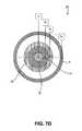 With reference toFIGS. 23C and 23D,transducer219 may also be configured as an annular array to provide planar, focused and/or defocused acoustical energy. For example, in an embodiment, anannular array228 may comprise a plurality ofrings230,232,234 toN. Rings230,232,234 to N may be mechanically and electrically isolated into a set of individual elements, and may create planar, focused, or defocused waves. For example, such waves can be centered on-axis, such as by methods of adjusting corresponding transmit and/or receive delays, T1, T2, T3 . . . TN. An electronic focus may be suitably moved along various depth positions, and may enable variable strength or beam tightness, while an electronic defocus may have varying amounts of defocusing. In an embodiment, a lens and/or convex or concave shapedannular array228 may also be provided to aid focusing or defocusing such that any time differential delays can be reduced. Movement ofannular array228 in one, two or three-dimensions, or along any path, such as through use of probes and/or any conventional robotic arm mechanisms, may be implemented to scan and/or treat a volume or any corresponding space withinROI212.