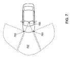 Some vehicles also include one or more long range zones, e.g.,zones111 and113, which typically extend hundreds of feet in front of the car. The size and shape of these zones depends at least in part on the selected sensor, e.g., long range radar versus LIDAR. In some vehicles the long range zones may be used to control an adaptive cruise control system, i.e., a cruise control system that can automatically adjust vehicle speed in order to maintain a preset separation distance between a car and a vehicle directly in front of it. These zones may also be used for emergency braking systems that automatically brake the car, or augment the braking system, when the system determines that the car is likely to collide with a pedestrian or other object within its pathway.