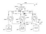 In certain embodiments, the MPDS may include no controllable valves, and in particular, no pinch valves. An exemplary fluid path set is illustrated in the schematic ofFIG. 1. In the fluid path set ofFIG. 1, fluid flow is controlled by the action of three roller pumps (A, B, C). Each roller pump simultaneously contacts two separate portions of the fluid path set and maintains fluid flow of two segments of the fluid path set. In some embodiments, each roller pump A, B, C, may operate unidirectionally, i.e., rotate only in one direction. In other embodiments, one or more of the roller pumps may be capable of rotating in both a forward and reverse direction, and in still other embodiments, all of the roller pumps may be capable of operating in forward and reverse directions. With regard to the schematic ofFIG. 1, each roller pump is unidirectional, rotating in the directions identified by the arrows.