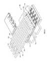 Due to the alternating longitudinal positions of thecable end portions130, some of thesignal conductors174 that are terminated to the signal pairs220 of thefirst signal row221 will be positioned between the shieldinglayers346 of twocable end portions130 that are terminated to the signal pairs220 of thesecond signal row222. In such embodiments, thepairs205 ofsignal conductors174 may be surrounded by grounded material after the ground shield151 (FIG. 6) is mounted to the terminatingside162. By way of example,FIG. 7 illustrates onepair205′ ofsignal conductors174. Thepair205′ ofsignal conductors174 is positioned between two shieldinglayers346 ofadjacent cables126. After theground shield151 is mounted to the terminatingside162, the ramp322 (FIG. 6) of theground shield151 will be positioned in front of thepair205′ ofsignal conductors174 and the top wall304 (FIG. 6) of theground shield151 will be positioned over thepair205′ ofsignal conductors174.
