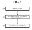 An example of an implementation is provided inFIG. 5. A query may be received by a database at510. The database may contain entries corresponding to one or more automatically identified entities for one or more movies and supplemental content. A response may be generated that includes supplemental content based on at least user history and/or user location at520. In some instances, a user history may include content consumed by a user (e.g., a song that was purchased, a movie that was viewed) and in some instances, the user history may include content for which the user has indicated an interest (e.g., a book that is in purchase queue). The response may be sent to a device such as a mobile phone, a smartphone, a laptop, or any other computing device at530.