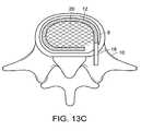 Now referring toFIG. 2 (c), in some embodiments, the device comprises twoballoons12 that can be used to support the vertebral load. The use of two balloons allows a surgeon to evenly support the load on each side of theendplate8. Now referring toFIG. 2 (d), in some embodiments, theballoon12 has a generally toroidal (“banana”) shape. The banana shape allows the surgeon to put in place a single device preferably on theanterior half14 of the disc space. In other embodiments, the strut has the footprint of a banana cage such as that described in, “Novel Banana Cage”, filed Dec. 31, 2002, U.S. Ser. No. 10/334,599, the specification of which is incorporated by reference in its entirety.