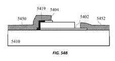 The structure illustrated inFIG. 54A can be formed by removing a portion of the semiconductor element5406 (e.g., by etching) such that a portion of the firstelectrical contact5402 is exposed (e.g., accessible from the same side as the second electrical contact5404) using photolithographic processes.