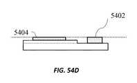FIG. 54D illustrates an alternative structure for a light-emitting diode. This structure is similar to the structure shown inFIG. 54C, however, the firstelectrical contract5402 is thicker such that the firstelectrical contact5402 and secondelectrical contract5404 have a top surfaces in the same plane or contacting a common surface. In some embodiments, this is advantageous as the light-emitting diode can be printed to a display substrate with co-planar connection pads already formed. This allows the light-emitting diode to electrically connect to the display circuit upon printing it to thedisplay substrate5410.