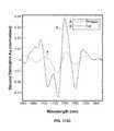 Many patents, such as U.S. Pat. No. 5,460,177, issued to Purdy, et al. in 1995, appears to describe approaches for using light from the near-infrared portion of the spectrum to provide “expressions” or spectra that can be examined to determine the concentration of glucose without drawing a sample of blood. Commonly-employed data reduction techniques in previous investigations generally include what are known as “multivariate” techniques, such as principal component analysis (“PCA”), partial least squares (“PLS”), support vector machine (“SVM”), and multiple linear regression (“MLR”). As a group, when these approaches are applied to the measurement of chemical substances, they are often referred to as “chemometrics.” These multivariate techniques may make it theoretically possible to create a correlation between measurable properties of a material like tissue, such as the amount of light absorbed or reflected as a function of wavelength (known as a “spectrum”), and the concentration of an analyte such as glucose. An example spectrum, which plots a variable related to light intensity (such as absorbance, transmittance, energy, etc.) as a function of the wavelength of light expressed in nanometers, is shown inFIG. 1.