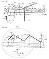 FIG. 11A illustrates optical behavior in the side cross-section of a tapered light guide structure similar to that ofFIG. 9, but having a prismatic mirror plane composed of more steeply tilted mirror sections.