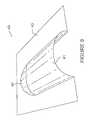 Theembodiment40 ofFIGS. 9-12 is best understood in geometric terms as a curved hollow cylinder of circular or oval crossection tapered with a domed front as truncated by a plane parallel to the cylinder axis.FIG. 9 shows a perspective view whileFIGS. 10 and 11 show a side elevation and a top view respectively. Aflange43 is shown around three edges of the cover. Dome closedend42 andcylindrical cover41 complete the embodiment.FIG. 12 shows a detail of an installation withcover40 shown in crossection. The interior45 is shown in a side view.