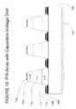 FIG. 13 is a side view of the fine structure of a focal plane array of photodiodes with a bias voltage distribution grid featuring a distributed capacitance.