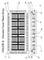 FIG. 8 is a drawing of a discrete focal plane array of individual detectors mounted to a supporting lens array and then to a readout integrated circuit.