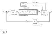 wherein the parameter KG, R and C are gain, resistance and capacitance values characterizing thePFC stage2. These parameters may be obtained, by simulation (system identification), by experiment or by theoretic considerations. The model actually used for the controller design is not crucial for the present invention and thus not further discussed herein.