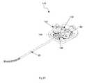 FIG. 193 also depicts an embodiment wherein a tool may be positioned into the working lumen access port (845) and electromechanically actuated through the use of an electromechanical actuator fitting (847) which may be coupled to the guide instrument base (48), for example, and also operably coupled to a tool which may be positioned into the working lumen of the guide instrument (18). As described above,FIG. 193 illustrates an embodiment capable of four tension element sheath instrument (30) control and four tension element guide instrument (18) control, as well as actuation or positioning of a tool by virtue of its mechanical association with the depicted electromechanical actuator fitting (847). Thus the depicted embodiment is capable of eight independent and simultaneous tensioning or steering actuations, as well as one tool actuation simultaneously and independently, all from the same instrument driver, as depicted. For example, a tool, such as a tethered grasper, may be actuated with a tension element operably coupled to the actuator fitting (847) in a similar manner that the tension elements described above are operably coupled to the control element interface assemblies (132). In other embodiments, lead screws, racks and pinions, and other mechanical couplings are desirable for operating or controlling a tool. In other embodiments without electromechanical tool actuation, or in embodiments where additional actuation is desired besides electromechanical, tools may be actuated manually by the operator at a position proximal to the working lumen access port (845).