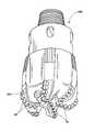 FIG. 8 is a front view of an embodiment of a roller cone earth-boring rotary drill bit of the invention that includes cutting elements as described herein;