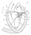 FIGS. 30 and 31 illustrate the effect of thetransvalvular band50 on themitral valve18 during diastole. During diastole, themitral valve18 opens so that blood can fill theleft ventricle16 from theleft atrium12. As best illustrated inFIG. 31, thetransvalvular band50 obstructs only a small portion of themitral valve18 opening, and therefore, does not cause excessive resistance to blood flow.
