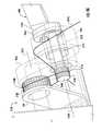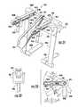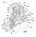 Pivot wings2063 comprise angle members pivotably coupled to theframe uprights475 for pivotal rotation aboutaxis476. In the example illustrated, pivot wings2063 pivot independently of arms2026, though the axes may be collinear. Each of pivot wings2063 has a first portion pivotally secured to a corresponding one oflinks429 and a second portion pivotably coupled to a corresponding one of pivoting supports2064. Pivoting supports2064 each have a first portion pivotably connected to a corresponding one of pivot wings2063 and a second portion pivotably connected to a corresponding one oflinks446 which are in turn pivotally connected to a corresponding one of cranks434.Biases2066 comprise compression springs captured between their corresponding pivot wings2063 and a corresponding pivot supports2064.Biases2066 resiliently bias pivot supports2064 in a forward direction away fromaxis476.