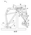 FIG. 17 is a side view of one side of the exercise apparatus ofFIG. 9 in a third state, illustrating the resulting elliptical path for the foot pad.