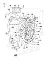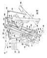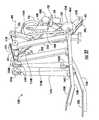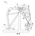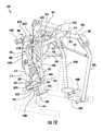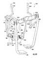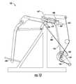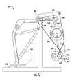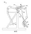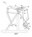 Flexible members444 comprise elongated flexible or bendable members such as cables, bands, wires, ropes, belts, cords, strings, straps, chains and the like that extend betweenadjustment member454 and arms426.Flexible member444L has a first end portion secured or connected toadjustment member454 and a second end portion secured or connected to forward extendingportion484 ofarm426L.Flexible member444L has central portions that wrap about a downwardly facing side of flexible member crankguide466L and a forwardly facing side ofguide438L. Similarly,flexible member444R has a first end portion secured or connected toadjustment member454 and a second end portion secured or connected to forward extendingportion484 ofarm426L.Flexible member444R has central portions that wrap about a downwardly facing side of flexible member crankguide466R and a forwardly facing side ofguide438R.