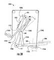 Flexible member guides238 and flexible member guides240 comprise structures having surfaces that guide movement of flexible members244. In one implementation, guides238 and240 comprise rotatable pulleys. In another implementation, guides238,240 comprise curved channels, grooves or other stationary structures are surfaces against which flexible members244 slide or move.