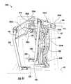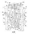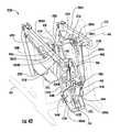 Slide rails962 comprise rods, tubes, beams or other structures fixed to arms426. Slide rails962 extend forwardly ofaxis476 and guide movement of link supports964 in fore and aft directions. Slide rails962 rotationally support pinion gears963 at their outer foremost ends. Pinion gears963 cooperate with pinion gears674 to support a respective one of toothed belts674.