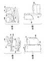 FIGS. 8A-8D illustrate howexercise apparatus320 utilizes the controlled and synchronized adjustment of the step height and stride length to facilitate a closer level of footpad spacing for footpads330. Footpads330 are similar to footpads230 except that footpads330 comprise a particular example implementation of footpads230 in which footpads330 comprise toe caps331. As shown byFIGS. 8A and 8B, footpads330 move through parallel elliptical paths, wherein the parallel elliptical paths move in vertical planes that are closer to one another and closer to thecenterline352 than conventional elliptical exercise devices. In such an implementation, inner portions footpads330 vertically overlap one another along thecenterline352, whereinfootpad330L overlaps theunderlying footpad330R and vice versa. The coordinated or synchronized adjustment of the step height and stride length helps to ensure that the actual positions of the footpads330 do not meet at the overlapping points along thecenterline352 and do not collide.
