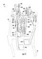 Synchronization coupler1668 comprises a looped belt wrapping abouttoothed gear1678 and aboutworm drive1670. In the example illustrated,coupler1668 comprises a toothed belt meshed with the teeth oftoothed gear1678 intermeshed with teeth ofpinion gear1680 ofworm drive1670.Worm drive1670 comprises a helically threaded shaft having acentral pinion gear1680. The helical threads ofworm drive1670 engage corresponding helical threads ofworn drive trolleys1672 which are guided by and slide alongshaft1684.Links1674 comprise rods or bars pivotably coupled to a corresponding one oftrolleys1672 and a second and pivotably secured to lever1676 through a universal joint.Levers1676 extend from supports1164 and serve as a lever arm for pivoting supports1164 about theirrespective axes665 to reposition the respective pivot axes498 relative toaxis476.
