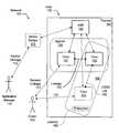 Operation4114 describes transmitting information about how the first application relates at least to the first core after receiving a handle of the first application (e.g. software agent1589 sending topological information aboutappnet1581 specifying one ormore core groups1564, after receiving an application handle from directory manager1520). A request for such information can include “Enterprise” or a pathname as an application handle, for example, or a handle of a resource or other component of the application or appnet, for searchingdirectory1586. This can occur, for example, in embodiments in whichdomain1585 implementsdomain2601 ofFIG. 19, in whichsoftware agent1589 implementsApplication Service Router2620 for performingoperation210, in whichappnet depicter2613 is configured to performoperation4114, in whichdirectory1586 implementsobject directory2643, in which appnet1581 implements cluster2690 (including core2691), and in whichASR2650 is configured to performoperation220.