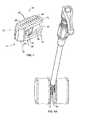 FIGS. 21 and 22 illustrate acartridge loader430 for use with thebone graft cartridge408. As seen inFIG. 22, thecartridge loader430 includescartridge slots432 and ahinge slot434. Thecartridge slots432 are sized to accept one of the halves of thebone graft cartridge408, while thehinge slot424 is interposed between thecartridge slots432 and is sized to accept thehinge424 of thebone graft cartridge408. With thebone graft cartridge408 in place in thecartridge loader430, bone graft material can be added to thebone craft cartridge408, and may also be formed into a bone graft pellet. For example, in some embodiments, thecartridge loader430 may be made of a foam or other flexible material, and once bone graft material has been added in loose form to both halves of thebone graft cartridge408, thecartridge loader430 may be folded (with the cartridge still inside) to join the two halves of thebone graft cartridge408. Excess graft material, if any, may be forced out of the openings at either end of thebone graft cartridge408. In alternate embodiments, a bone graft cartridge may be loaded with bone graft material without the use of a cartridge loader. For example, in certain embodiments, a bone graft cartridge could be held by hand and folded without the use of the loader. As another example, in certain embodiments, a pre-formed bone graft pellet may be inserted into the bone graft cartridge. As another example, in certain embodiments, a bone graft cartridge may not be used, and instead a pre-formed bone graft pellet placed directly into an opening in the funnel. In such an embodiment, for example, a cylindrical bone graft pellet having a diameter of less than about 5 millimeters may be inserted directly into an opening in a funnel/inserter that is sized to accept the pellet, and advanced through the opening toward the site of interest with a tamping rod.