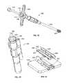 FIG. 27 illustrates a side sectional view of asystem800 that utilizes acartridge802 to insert abone graft pellet804 into an inserter806. The inserter806 includes ahandle808 and anopening810. Theopening810 is sized to accept thecartridge802, and includes a forward slopedsurface812 that cooperates with a corresponding slopedsurface814 on thecartridge802 to provide a mechanical stop to prevent thecartridge802 from being pressed too deeply into theopening810. Theopening810 provides an entrance to a conduit that passes to the site of interest through the body of the inserter806.