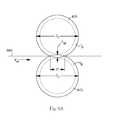 Note that all of the equations herein are based on an assumption that the diameter Diof the first activation roll is equal to the diameter Diof the second activation roll. Where the diameters of the first and second activation rolls differ, the method for determining strain and strain rate in a mechanical activation process herein remains the same with the exception that the equations corresponding to the variables mentioned above must be re-derived taking into account the difference in roll diameters. One skilled in the art would be able to modify the equations provided herein in the event that the diameters of the first activation roll and the second activation roll differed.