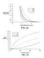FIG. 44 is a graph depicting the compressive stress versus thickness for an unsupported projection layer and two body facing materials under a one-cycle loading and unloading.