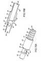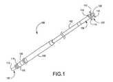 A next primary step in the exemplary method ofassembly500 is to combine the outer coil assembly with the inner coil assembly as indicated instep530 ofFIG. 26B.FIGS. 22A and 22B show an isometric view and cross-sectional view, respectively, of a stage of assembly where the outer conductor assembly is sleeved over the inner conductor assembly andinsulator tubing124. At this stage of assembly, as indicated instep532 ofFIG. 26B, the distal end of theinner coil120 covered by theinsulator tubing124 may be threaded through the proximal end of thering connector130 and distally through theouter coil134 andouter sheath152. As shown by the arrows inFIGS. 22A and 22B, as theinner conductor120 andinsulator tubing124 is fully threaded through thering connector130, the proximal end of thering connector130 may approach thedistal extension186 of theconnector insulator116 that is covered by theinsulator tubing124. Thering connector130 may be sleeved over thedistal extension186 of theconnector insulator116 and over theinsulator tubing124. The proximal end of thering connector130 may approach and abut theouter shoulder188 of the cascading shoulder of theconnector insulator116. Thering connector130 may thus frictionally engage thedistal extension186 of theconnector insulator116 through frictionally engaging the outer surface of theinsulator tubing124. This frictional engagement resists relative longitudinal and rotational motion between the outer conductor assembly and theconnector insulator116. It can be seen fromFIGS. 22A and 22B that the outer conductor assembly and the inner conductor assembly may be electrically insulated from one another by a combination of theinsulator tubing124 and theconnector insulator116.