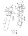 One exemplary embodiment of apassive tip sheath108 is depicted in greater detail inFIGS. 12A and 12B. Thepassive tip sheath108 may be generally cylindrical in shape with along tubular sheath320 forming the proximal section thereof. Thetubular sheath320 may transition at a steppedshoulder321 to a narrower diametertine recess section322. Immediately distal to thetine recess section322 is atine section323 from which a plurality of tines110 (in this exemplary embodiment, four) protrude at a number of evenly-spaced circumferential locations about thetine section323. Thetines110 extend proximally from thetine section323 at an acute angle with respect to therecess section323. Thepassive tip sheath108 may extend a short length further distally from thetine section323 in asloped section324 that tapers in diameter until terminating at an annular face325.