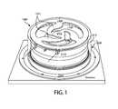 FIG. 17 is a perspective view of aspyder disk1300.FIG. 18 is a top view of thespyder disk1300 ofFIG. 17.FIG. 19 is a side view of thespyder disk1300 ofFIG. 17. As shown inFIGS. 17 through 19, thespyder disk1300 is defined by a ring withspokes1310 and constructed of fiberglass or other rigid yet flexible material. As discussed above, thespokes1310 of thespyder disks1300 are configured to coaxially deflect when themagnet1120 is vibrated whereby the energy of vibration of themagnet1120 is ultimately imparted to the housing to thehousing1200.FIGS. 18 and 19 illustrate preferred dimensions for thespyder disks1300.