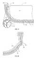 FIG. 3D shows a first assembly step, which depictsshell400 as depicted inFIG. 3A and a first layer410 (which may also be referred to as an inner layer). In some embodiments,shell400 can be a thermoformed plastic shell, a compression molded shell, an injection molded shell, or a combination thereof. In some embodiments,first layer410 is a microfiber layer; microfiber layer could further be a preformed microfiber layer. It should be understood that the embodiments shown inFIGS. 3B and 3C could also be used in the assembly steps shown inFIGS. 3D-3G.First layer410 can be a preformed microfiber layer.First layer410 can be adhesively coupled to acentral portion409 of recessedportion402. In one embodiment,first layer410 can be adhesively coupled to shell400 by a thermoplastic adhesive, while in other embodiments a thermosetting adhesive can be utilized. In both cases,shell400 andfirst layer410 can be heated to activate the thermal adhesive.FIG. 3E shows a second step in which an expanding device is used to pressperipheral portions411 offirst layer410 around alip portion404 ofshell400, thereby adhesively engaging the peripheral portions offirst layer410 aboutlip portion404 and along sidewalls ofshell400. Becausefirst layer410 is preformed to conform with an inside surface ofshell400, undue stretching offirst layer410 can be controlled and avoided. In this way, pin holes can be prevented from forming infirst layer410, thereby preventing adhesive and/or a portion ofshell400 from showing throughfirst layer410.